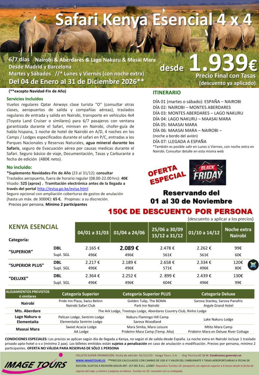 Kenya Esencial* BLACK FRIDAY* Aberdares & lago nakuru & Masai mara, 150€ de descuento, 7d desde 1.939€