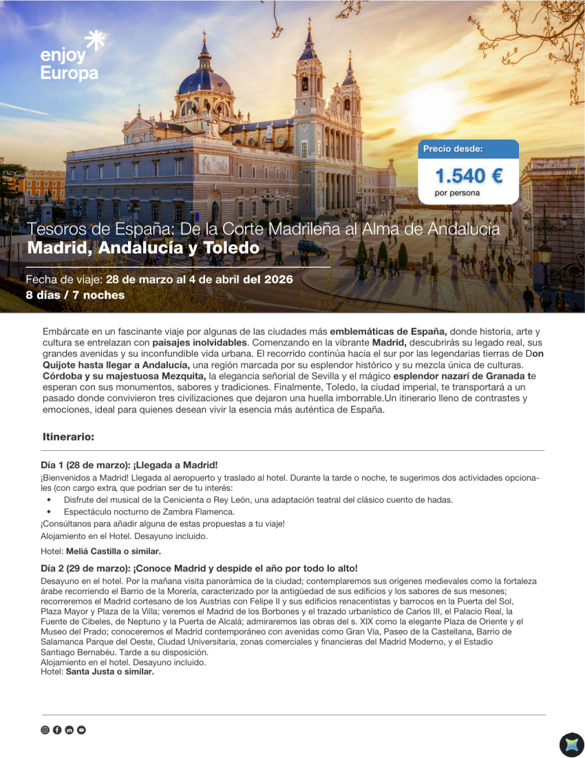 Tesoros de España: De la Corte Madrileña al Alma de Andalucía desde 1.540€